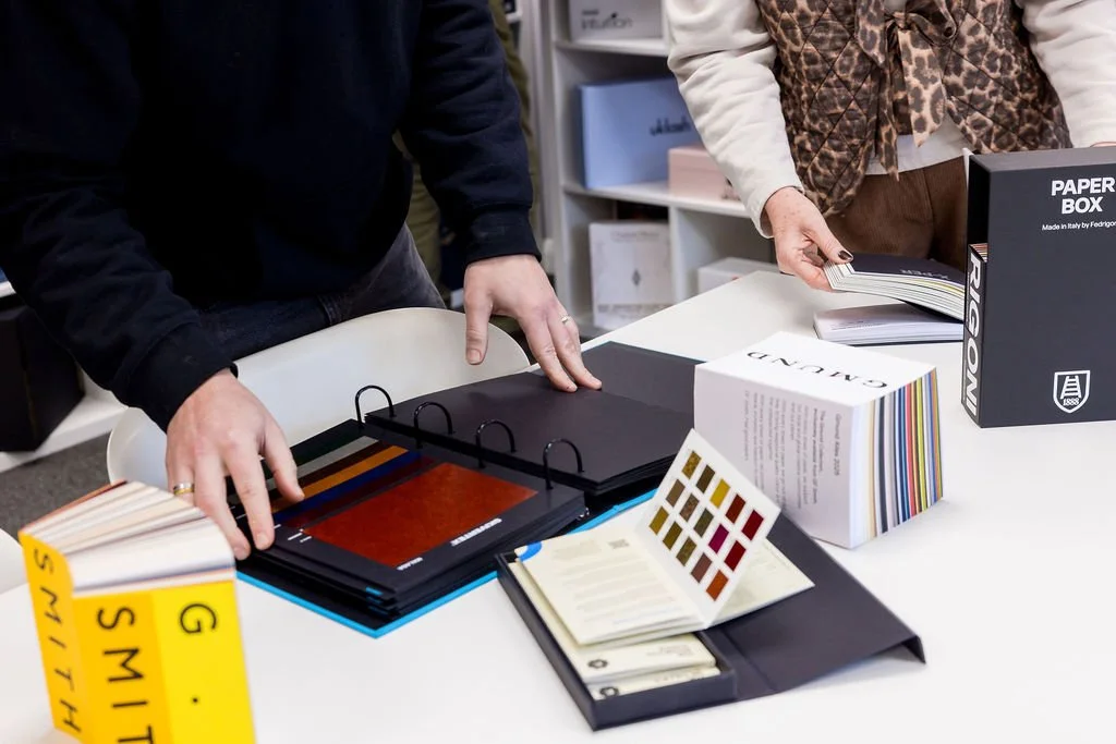 You’re welcome to pop in any time to chat through your ideas, peruse our paper library or take a look at our production processes in the adjoined factory.
